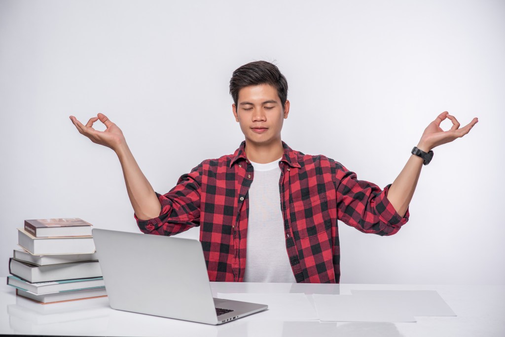 Deep breathing is a simple and efficient stress-reduction technique. Take a deep breath in via your nose for 4 seconds, hold it for 7 seconds, and then exhale gently through your mouth for 8 seconds in a comfortable position.